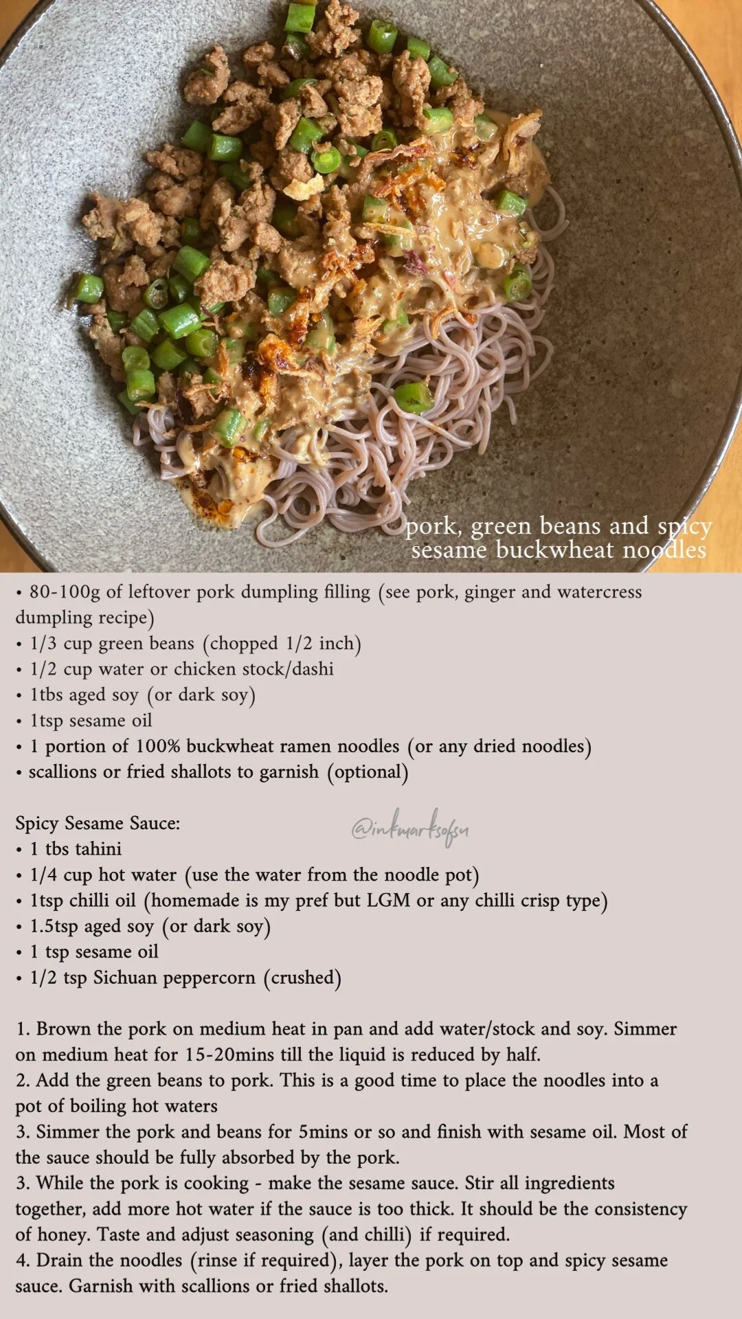 Pork, Green Beans and Spicy Sesame Buckwheat Noodles